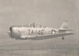 Another formation shot. On my first formation flight (with my instructor), we were lead plane for a formation takeoff with three planes. On the second flight the instructors forgot that I had never made a formation takeoff in wing position, and I was a solo wingman. With less weight, my plane became airborne first. I was afraid to reduce power, so I passed the leader -- somewhat embarrassing.