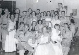 Here is a picture of our graduation party (1st half of training). Many of us were married. In the afternoon of this day, one of the students said, "Thank God this is the last time I'll have to fly with that Son of a Bitch!" Evidently they were arguing and fighting in the cockpit, which caused them to stall out in the landing traffic pattern and crash. The power-on stall characteristics of this plane are vicious.