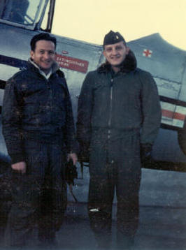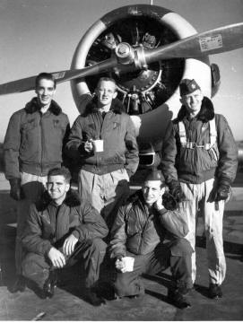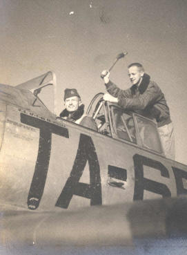 This was my first instructor, Lt. Littlejohn (left) with one of the original five. He was not harsh or difficult - it was the airplane that was difficult. Early on, I nearly killed both of us while learning to land that thing.