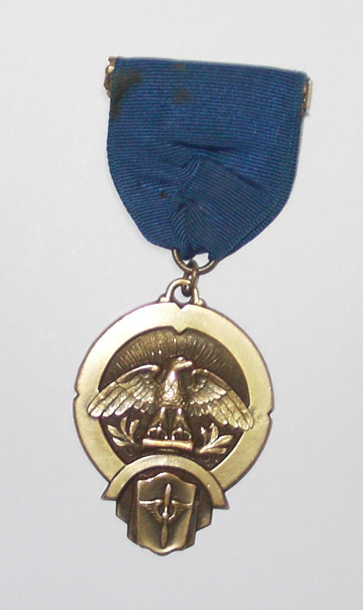 There's an amazing story to go with this. I didn't know anything about getting a medal. Then, about the year 2005 (more than half a century after graduation), I received a message from a lady in Arizona who said she had been looking for me so as to give me this medal . She said she looked me up on the Internet.