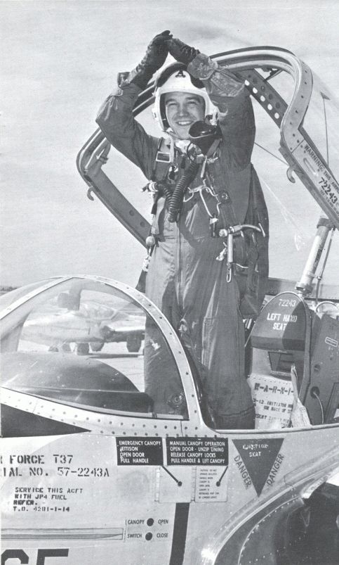 The T-37 was almost a toy. It was designed as a trainer and powered, I was told, by two missile engines. The cabin was not pressurized, so we had orders not to fly above 22,000 feet - I think it was. Pilot and copilot had identical instrument panels. It had a high-lift wing and was designed to withstand vigorous acrobatics. We could do inverted spins in that aircraft - a really wild maneuver.