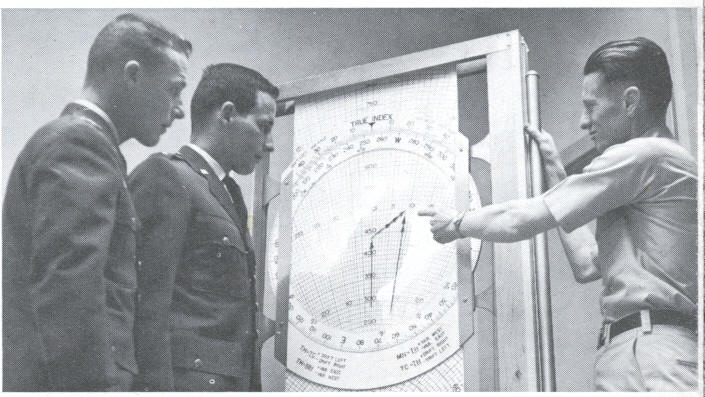 The remaining photos are from an Air Force brochure that was made up while I was stationed at Webb. Some people came from Training Command headquarters and took photos. I didn't know until after I had transferred to my next station that I would be in it. My picture is shown in the Navigation classroom as we look at a training device.