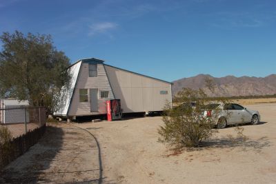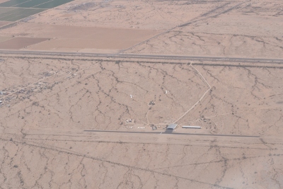 This is the Operations Building at Arizona Soaring. They have a hangar on the other side of this, where all their aircraft are stored at night. This view is looking northwest, and the runways are off to the right, such that a person in the office can see and record takeoff and landing times.