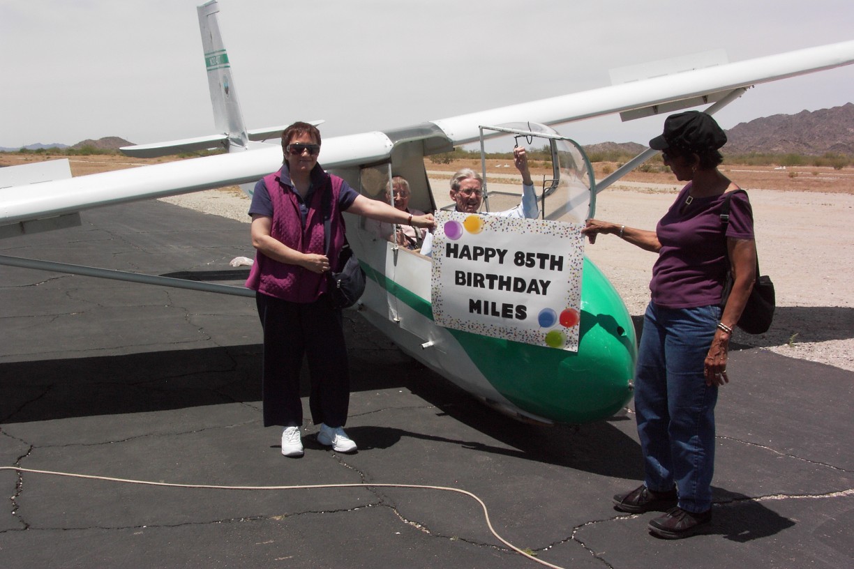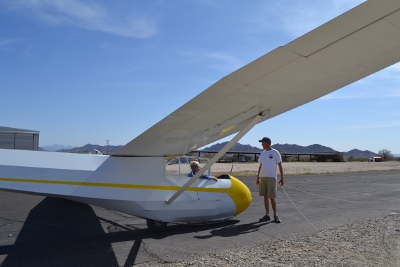So I went to Arizona Soaring, Inc., which is located about 30 miles southwest of Phoenix, and began flying there on October 4th, 2009. I think it took me longer than it would for a young person, but it wasn't bad. My total logged glider time when I finished the Practical Test was 6 hours and 33 minutes. But because it was not good soaring season, the flights were very short, and I had 47 flights, including 15 solo, in that length of time. Some flights were only for about 5 minutes.