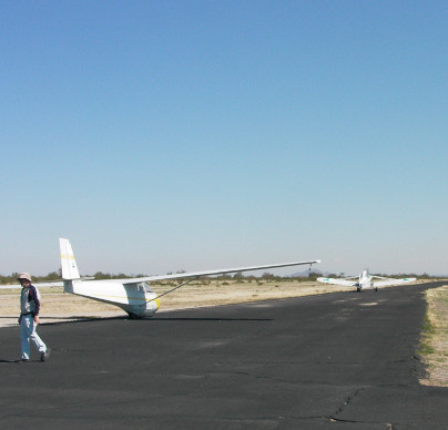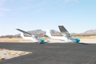 Arizona Soaring has at least four of these trainers. Here two of them are secured to the ground to prevent gusts from damaging them.