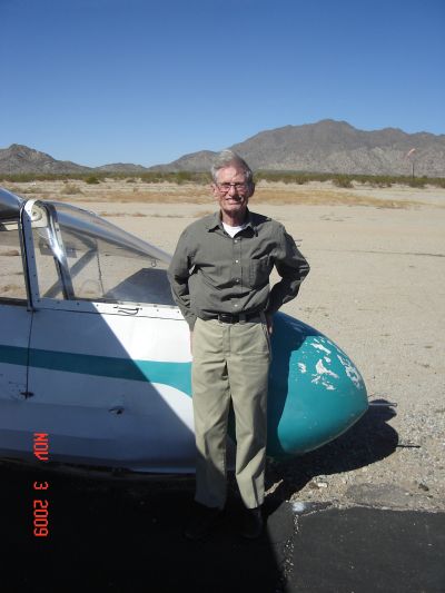 This was the standard "First Solo" picture - November 3rd, 2009. The glider is a trainer, Schweizer SGS2-33A. The paint on the nose is worn, but it performs as it should. It has recently been repainted. My Practical Test with an FAA designated examiner was completed on December 2nd. http://www.azsoaring.com/